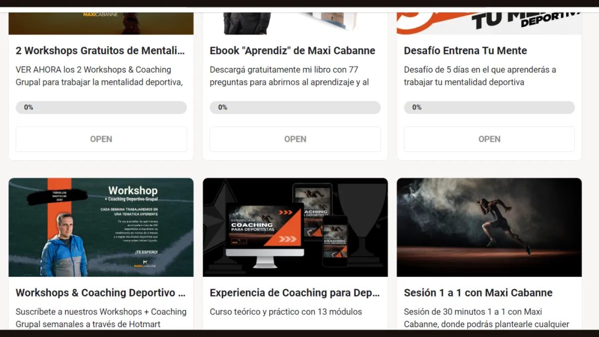 Una vez dentro, accede a nuestros contenidos exclusivos, webinars y sesiones en vivo con Maxi y otros profesionales del deporte. Aprende estrategias y técnicas comprobadas que te ayudarán a mejorar tu rendimiento y alcanzar tus objetivos. Este es tu momento para crecer, aprender, compartir y mejorar juntos.